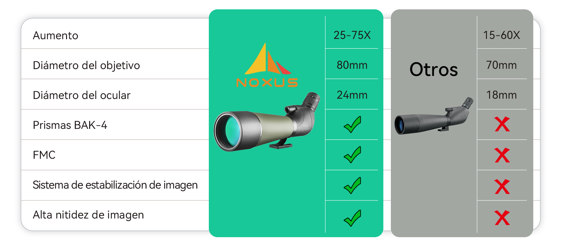 Así surgió Noxus. La marca se compromete a utilizar óptica de alta calidad e ingeniería estable para ofrecer una visión de largo alcance brillante, nítida y cómoda.
